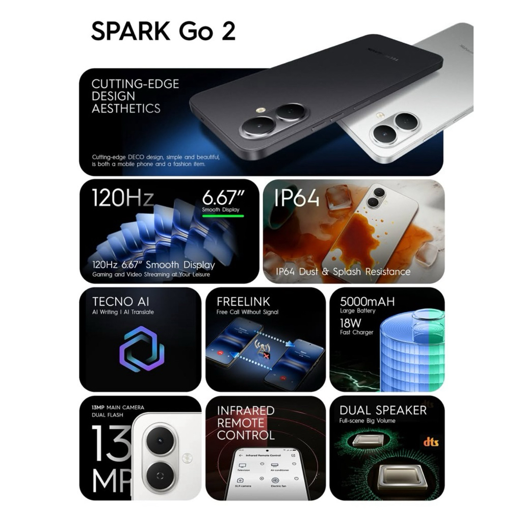 Tecno Spark Go 2 4GB+4GB/128GB IP64 | 6.67” 120Hz | Garansi Resmi Tecno Indonesia 13 Bulan