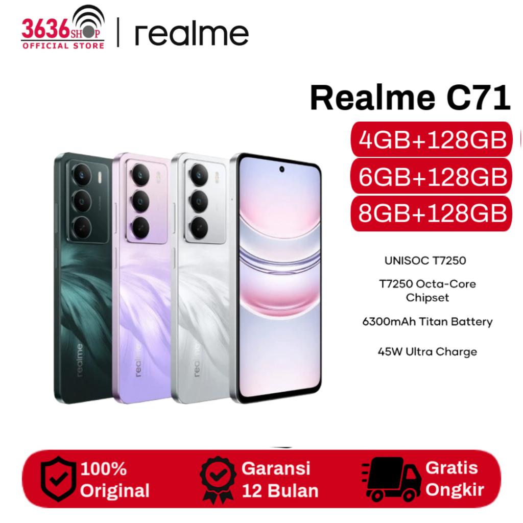 Realme C71 NFC 4GB+128GB 6GB+128GB 8GB+128GB Battery 6300 mAh - Garansi Resmi 1 Tahun