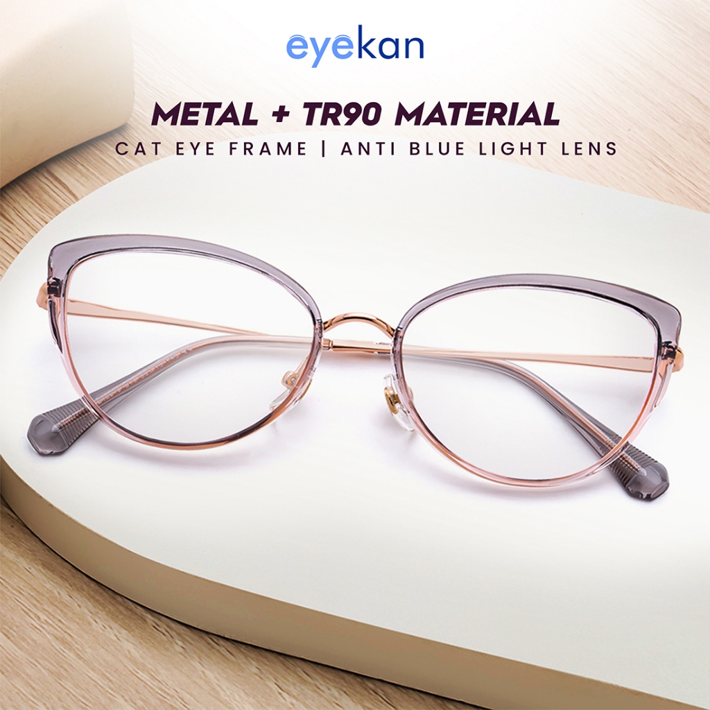 EYEKAN Kacamata Anti Radiasi Cat Eye Minus Anti bluelight Photocromic Bluecromic Bahan Metal Fashion Korea Wanita S12013