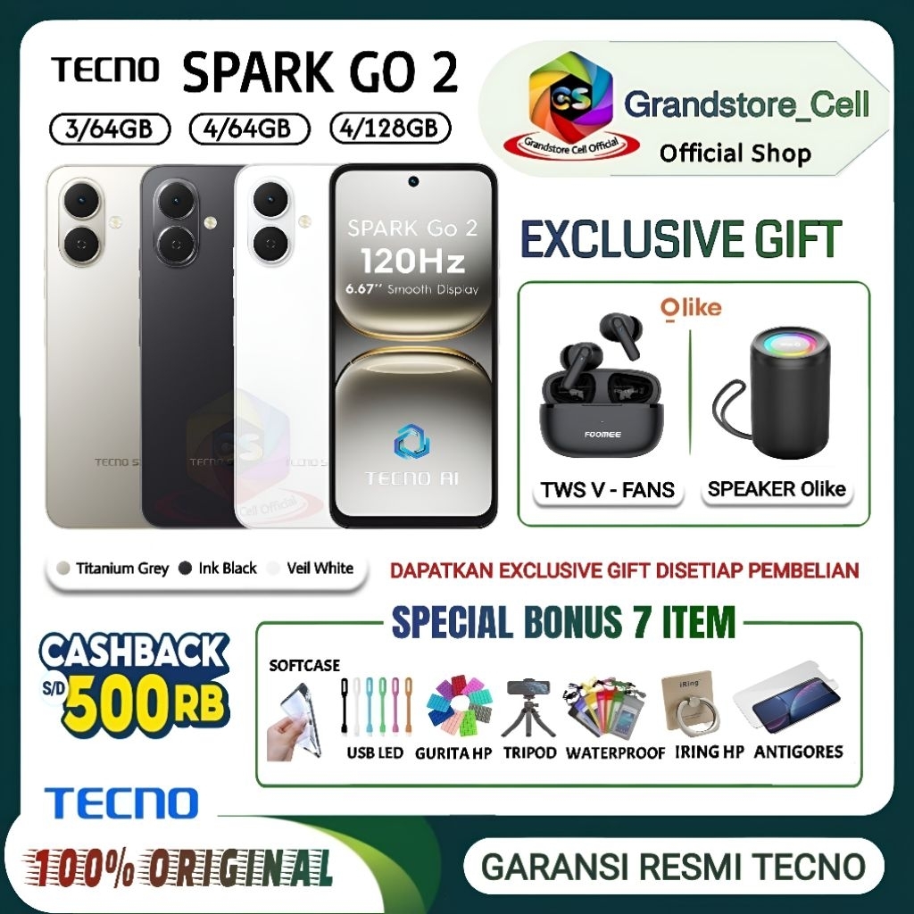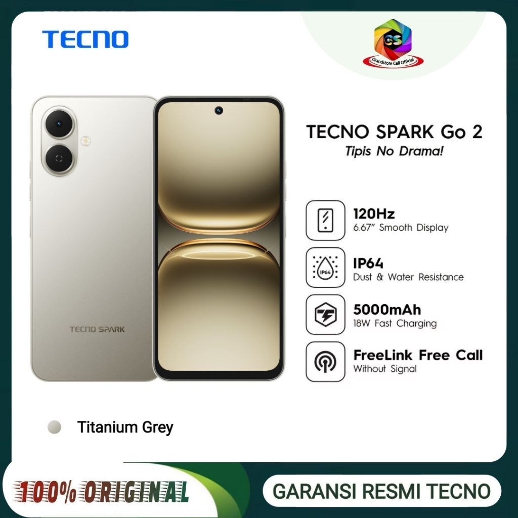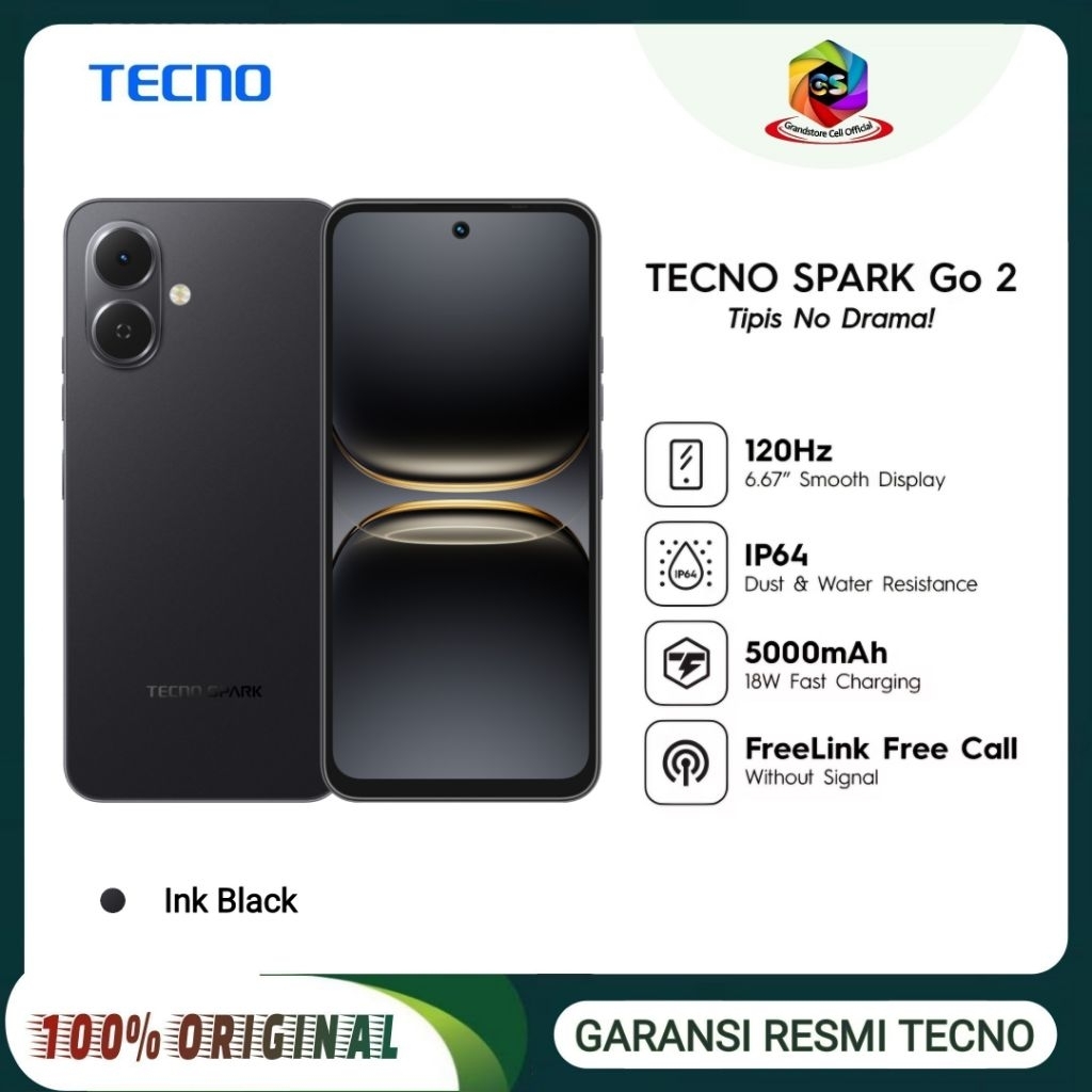 TECNO SPARK GO 2 3/64 GB 4/64 GB 4/128 GB - 5000mAh, 18W Fast Charger, IP64, 120Hz, GARANSI RESMI TECNO INDONESIA - Spar