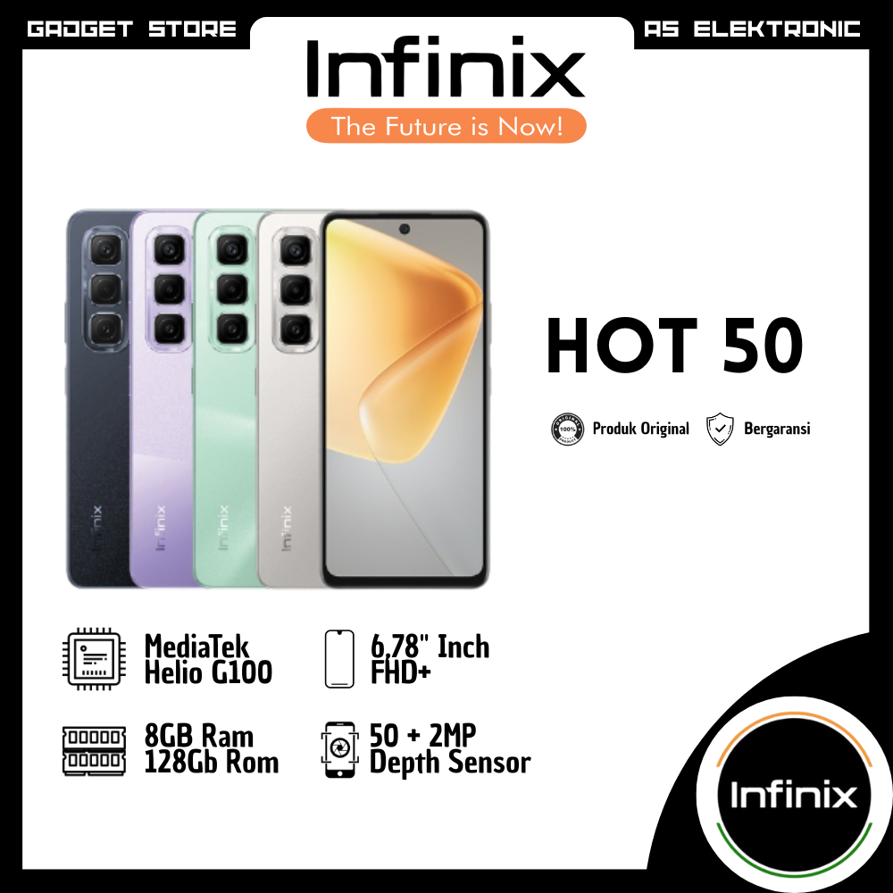 New Entry Infinix Hot 50 - XOS 14.5 Powered by Android™14 - Helio G100 - 6GB/8GB // 256GB/128GB