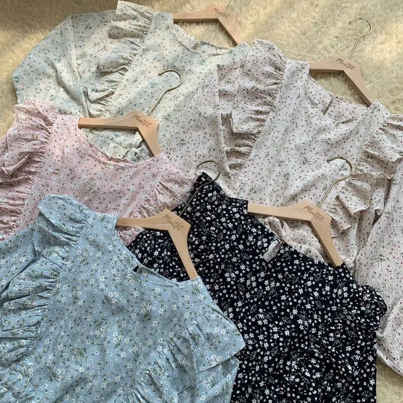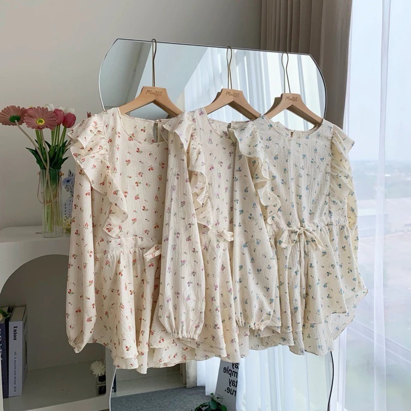 DAISY STUFF Blouse Motif Floral Lengan Panjang Korean Look