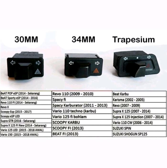 REKOMENDASI SAKLAR TOMBOL RETING HAZARD SUPRA BEAT VARIO REVO KHARISMA SMASH SHOGUN - 30MM ORI