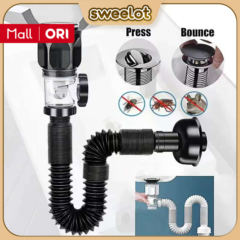 BOARD STORE Wastafel Anti Bau Pipa Pembuangan Siphon Aksesori Wastafel Selang Fleksibel Aksesori Saluran Air Anti Bocor Penutup Pipa Sistem Tekan Kedap Air