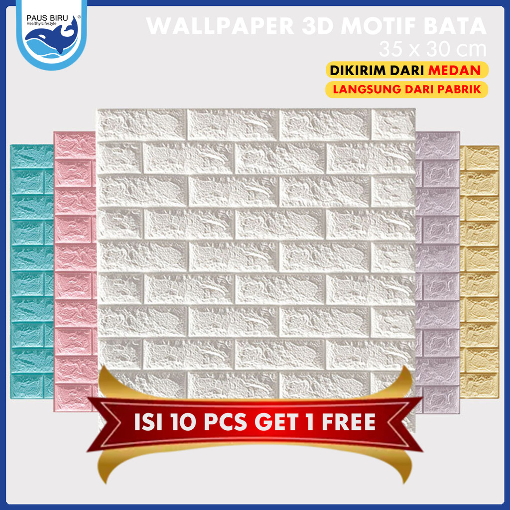 BYE BYE BADMAN Paus Biru - PAKET 10 PCS FREE 1 PCS 35x30cm Wallpaper Dinding 3D Foam Mini Motif Batu Bata Dekorasi Rumah Kamar