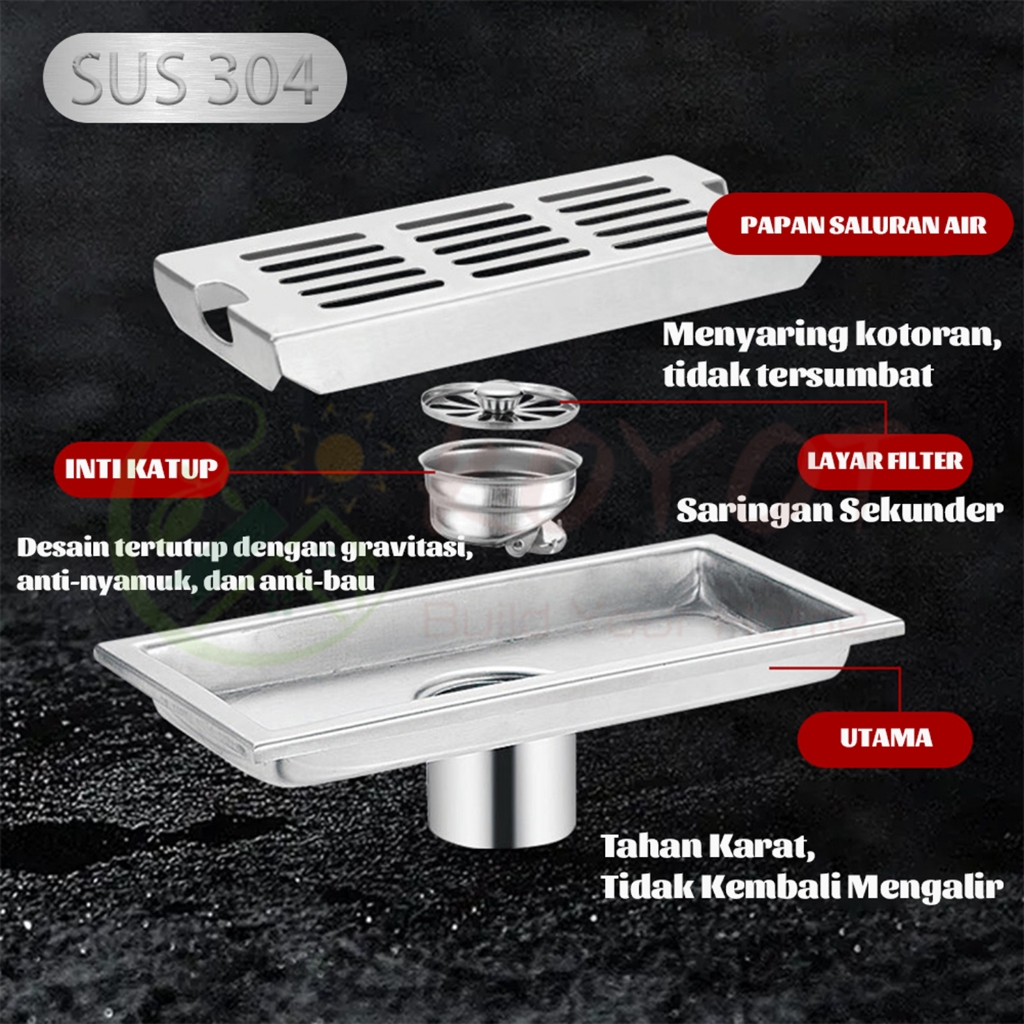 BOARD STORE KOYOT Floor Drain Saringan Got 304 Stainless Steel 10/20/30/60cm Saringan Got Kamar Mandi Anti Kecoa Anti Bau Floor Drain Kamar Mandi Anti Kecoa Anti Bau