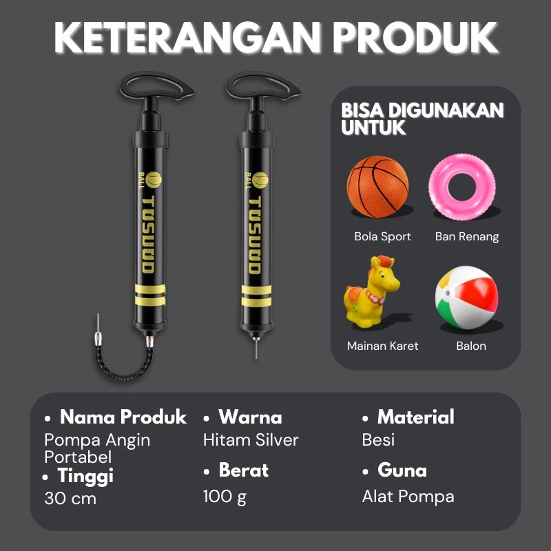 BOARD STORE BBAK Pompa Bola Angin Portable 130 PSI Pompa Bola Sepak Basket Voli Balon EXTRA P3NTIL