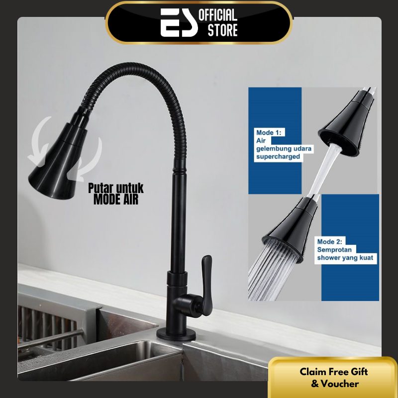 SNORKLING SHOP ES Kran Angsa Fleksibel Kran Cuci Piring Hitam Kran Cuci Piring Dinding Anti Karat