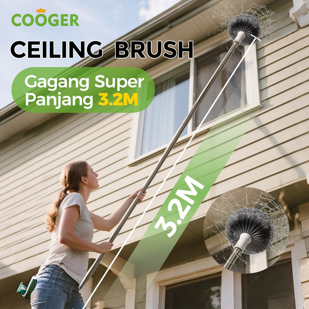 CITRA 88 STORE COOGER Sapu Sawang Plafon Panjang 3M Dapat Diatur Bulu Tebal Pembersih Debu Atap Langit Langit