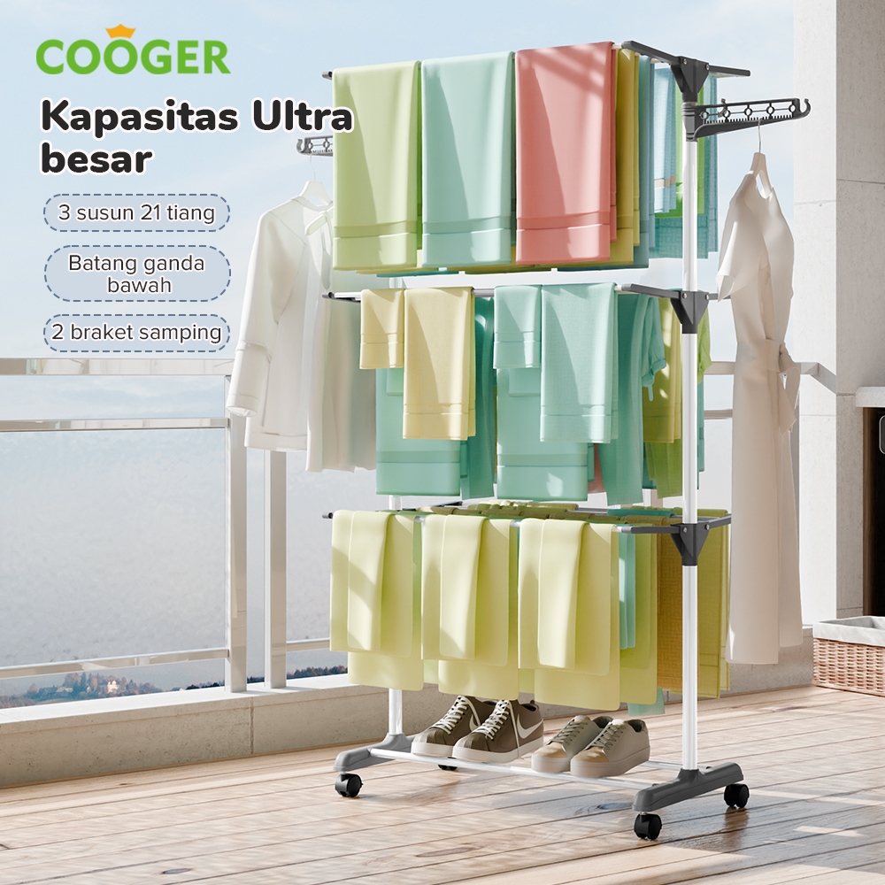 SNORKLING SHOP COOGER MEDAN Jemuran Baju Lipat dengan Gantungan 4 Level Drying Rack Jemuran Menara Stainless Steel