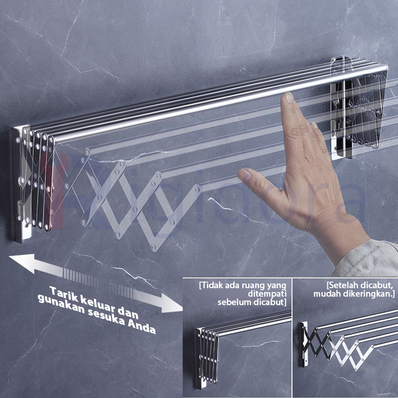 SNORKLING SHOP Rigidora Jemuran Baju Tempel Dinding Tiang Penjemur Pakaian Lipat Stainless Steel