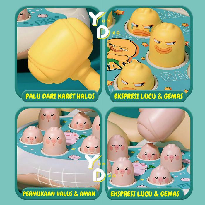 Mainan Edukatif Anak Interaktif Whack-A-Mole Pukul Palu Motorik Kids Toy Hadiah Anak - Pink Piglet