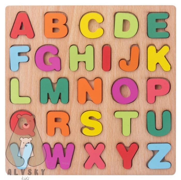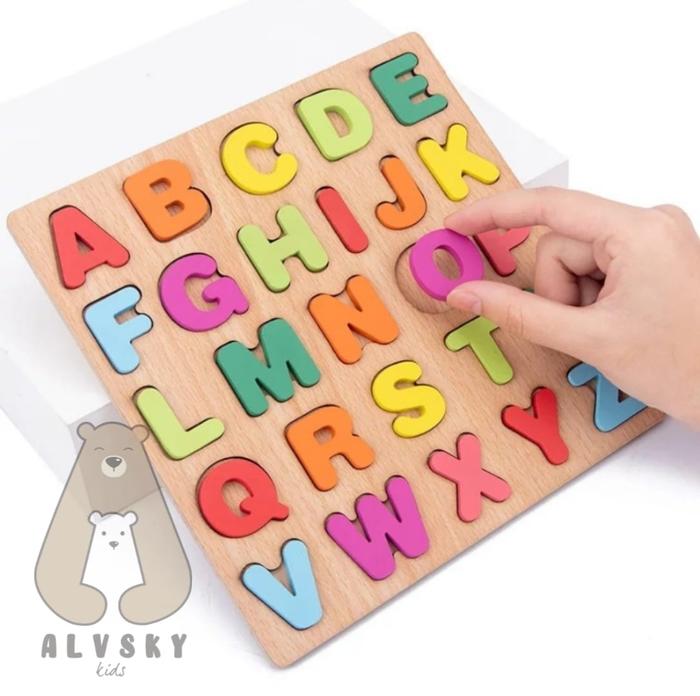 PUZZLE KAYU ANAK MAINAN KNOP ALFABET ANGKA ABJAD EDUKASI TOYS Games - HURUF BESAR C