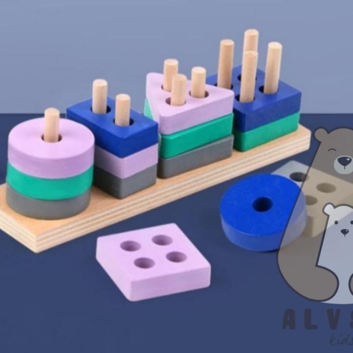 MAINAN EDUKASI ANAK BASIC SHAPE KAYU BALOK GEOMETRI TOYS BENTUK WARNA - GEO BLUE