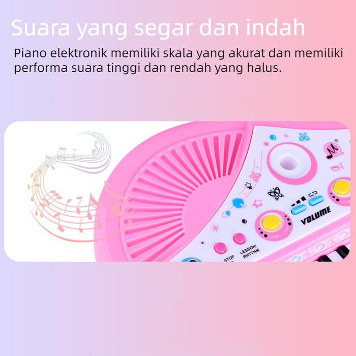 Mainan Piano MIC Keyboard Elektronik 37 Kunc Piano Mini Dengan Mikrofon Anak Alat Musik Edukasi Anak - Pink