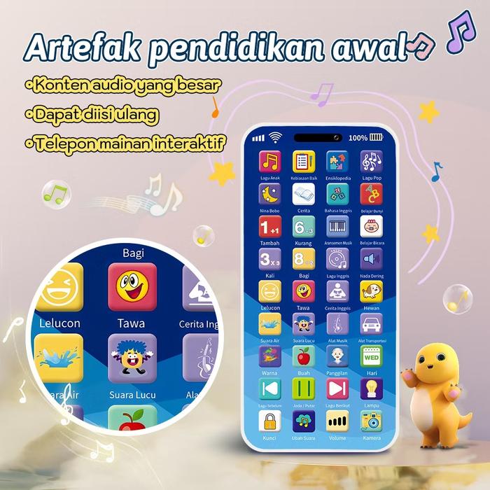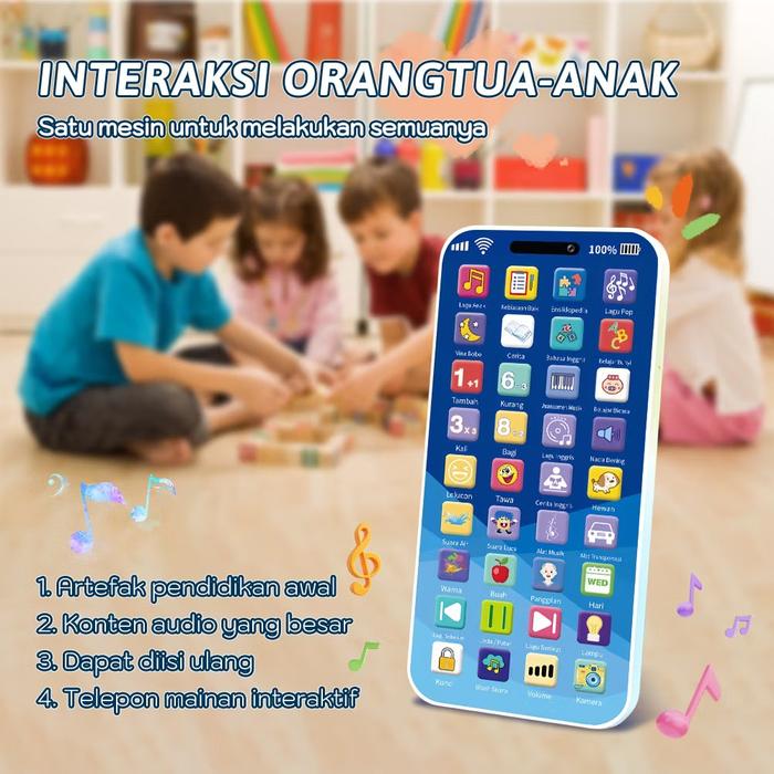 Mainan Edukasi HP Anak Edukatif Multifungsi dengan Suara Musik Lampu dan 36 Tombol Interaktif - REKAM SUARA Hp Anak