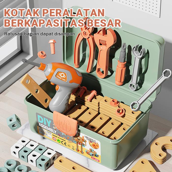 Mainan Bor Listrik Mainan Tool Box Anak DIY 3D Building Block Mainan Sekrup Obeng Mainan Edukasi - 123pcs