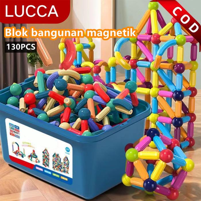 130pcs DIY Building Blocks Mainan Batang Blok Magnetik Bola Set Susun Edukasi Anak - 25 Pcs