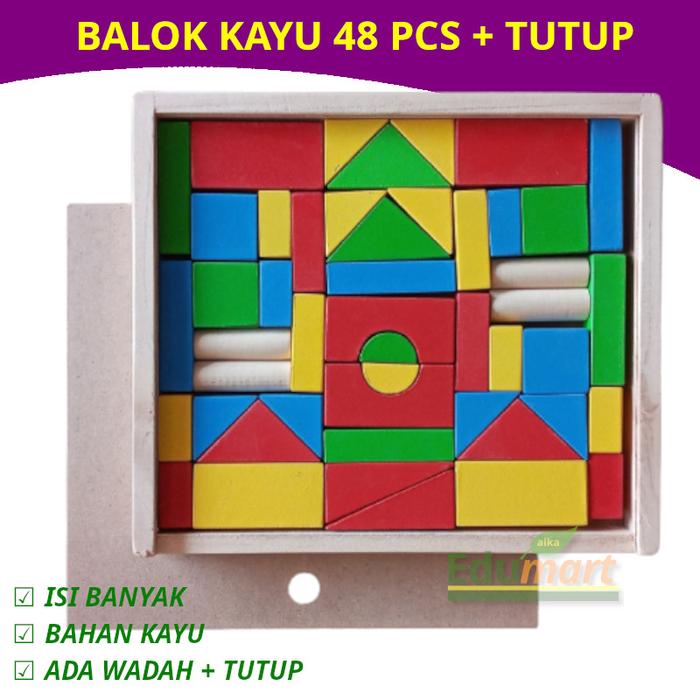 Mainan Balok Susun Kayu Edukasi Edukatif Anak 2 3 4 5 Tahun Pinus Box dan Tutup - BALOK 48 TUTUP