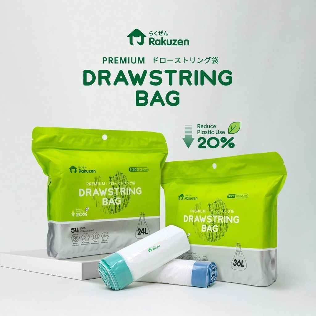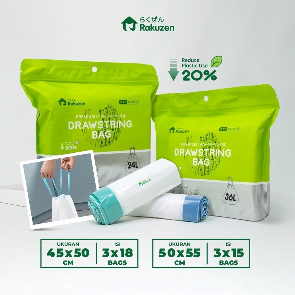 CITRA 88 STORE Rakuzen Premium Drawstring Bag 45 x 50 cm & 50 x 55 cm - Kantong Plastik Sampah Premium Dengan Tali