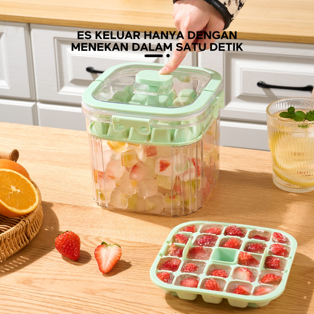 CITRA 88 STORE ecentio 3L Cetakan Es Batu 48 Grid ember BPA Free gratis sendok penyimpanan es dan pembuatan Dengan Press Handle Sekali Tekan