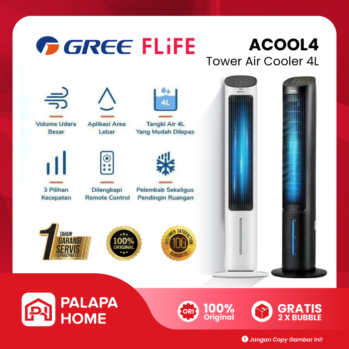 Air Cooler Tower Fan Gree Flife Gta-Acool4 4 Liter | Kipas Penyejuk Udara Ruangan Portable Coller 4L