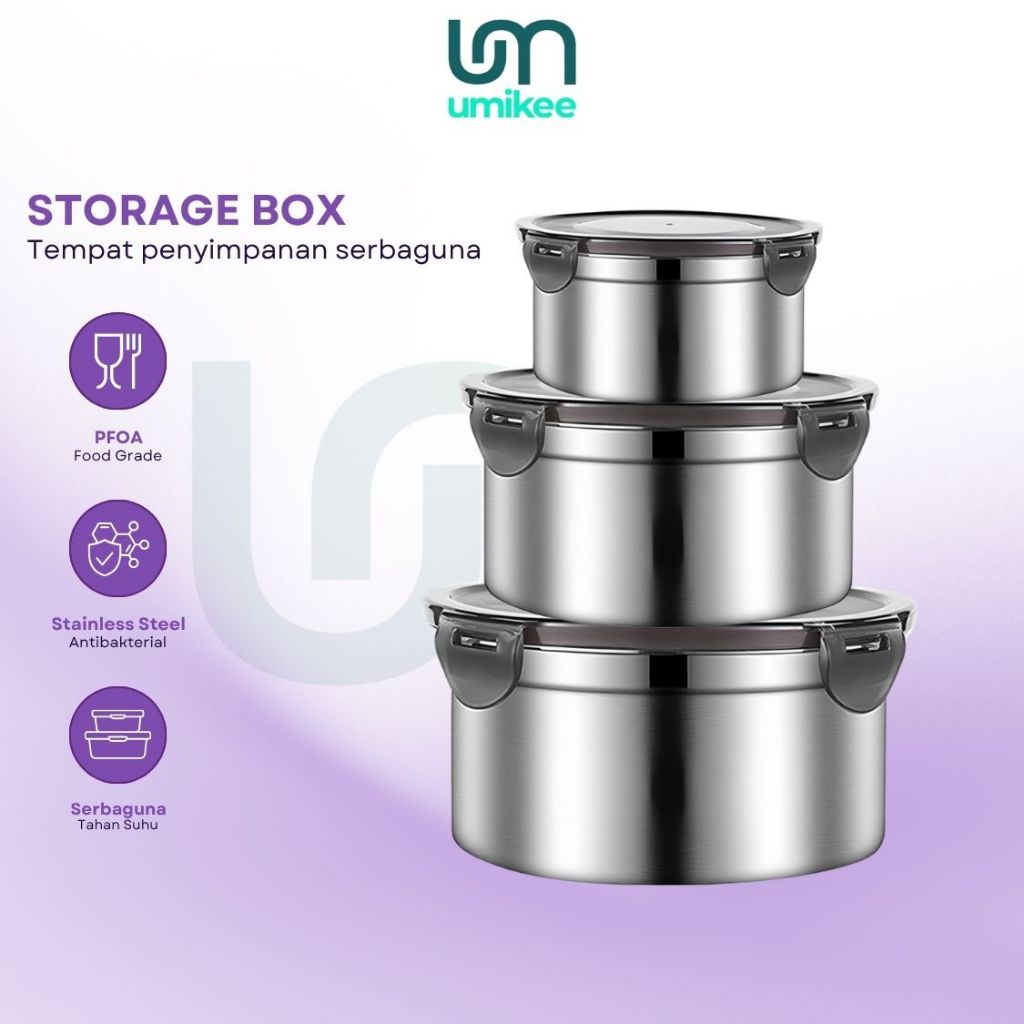 CITRA 88 STORE Umikee Lunch Box Stackable Bulat Stainless Tempat Penyimpanan Serbaguna Kedap Udara Anti Tumpah