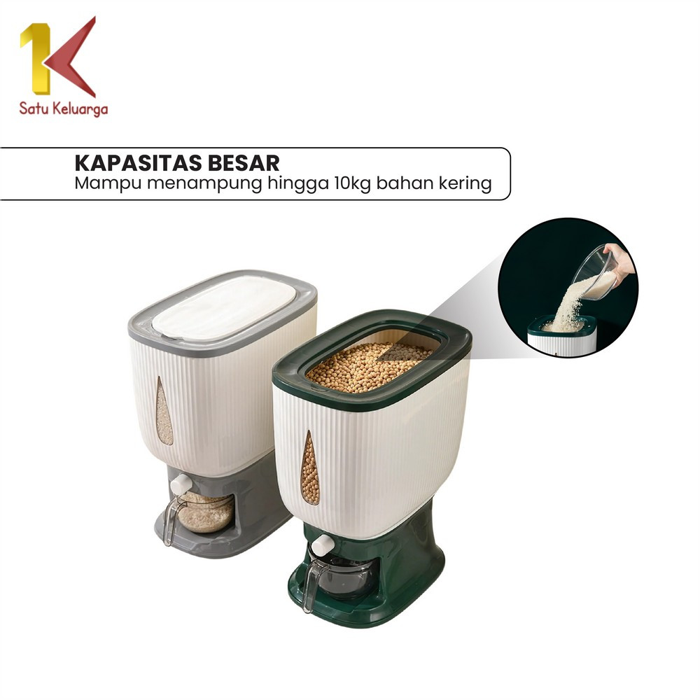 CITRA 88 STORE Satu Keluarga Dispenser Beras 10 KG C360 Rice Dispenser Tempat Wadah Penyimpanan Beras Otomatis Dengan Wadah Pengering Beras