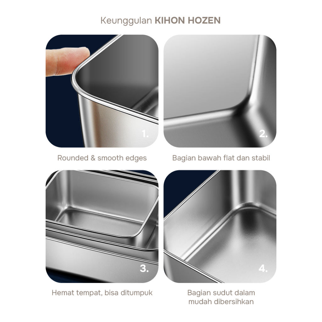 BOARD STORE KIHON HOZEN Stainless Food Container Wadah Makanan Anti Tumpah Easy to Clean Stackable SUS304