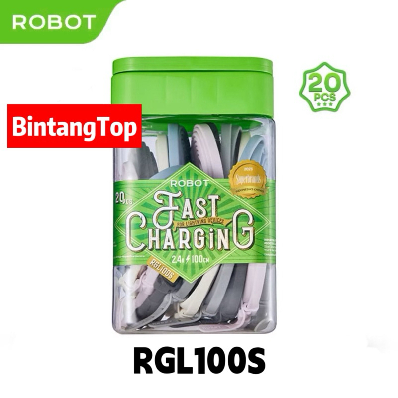 Kabel data ROBOT RGL100S 2.4A / RGL100 LIGHTNING 2.1a 100cm ORIGINAL ( 1 TOPLES ISI 20pcs )