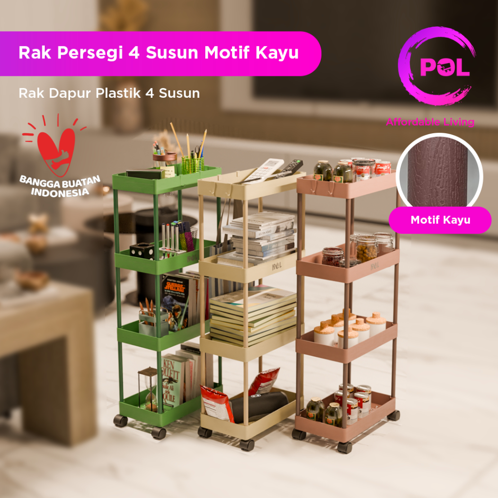 BOARD STORE POL - Rak Persegi Motif Kayu Plastik 4 Susun