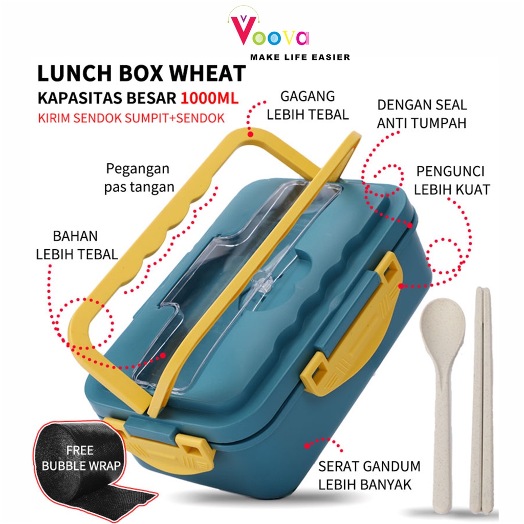 BOARD STORE VOOVA Lunch Box Dan Lunch Bag Tas Bekal Kotak Bekal Makan Siang Bahan Jerami Pegangan melengkung + Sendok Dan Sumpit memiliki kemasan karton