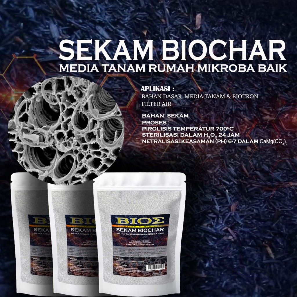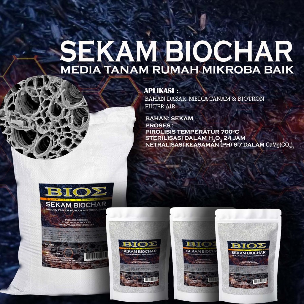 Sekam Bakar Biochar proses Pirolisis, netralisasi dan stelisisasi media tanam 1kg sampai 10kg 44D571