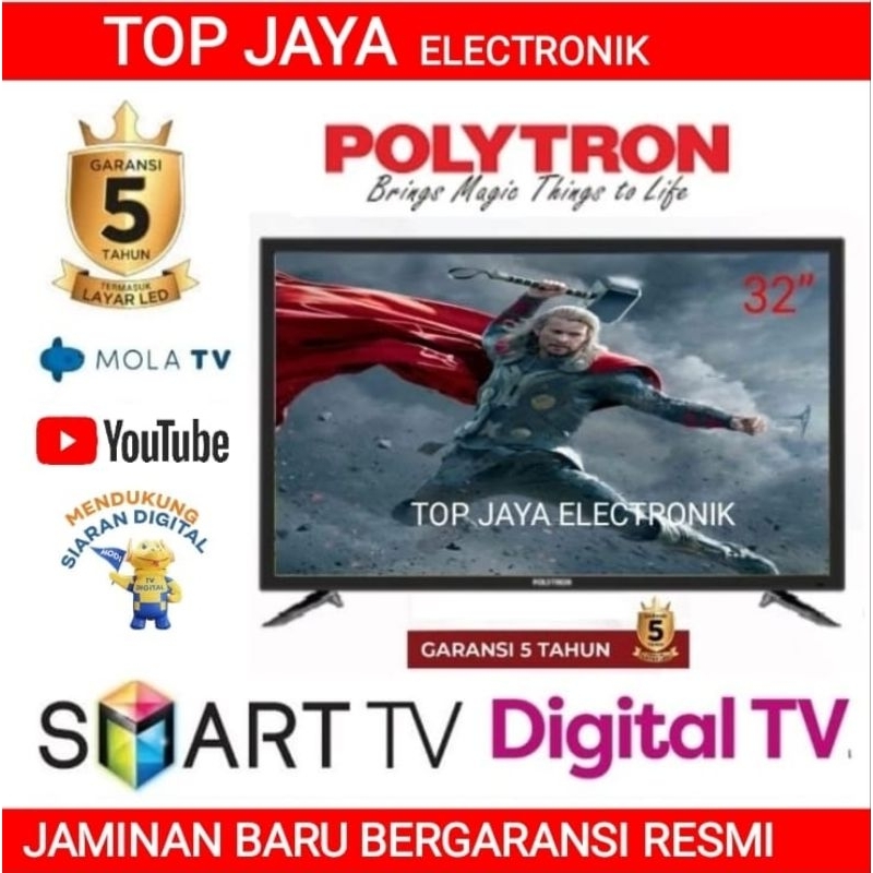 [Star] Led Tv Polytron 32 Inch Smart Digital Tv New Series Bergaransi Resmi 5 Tahun