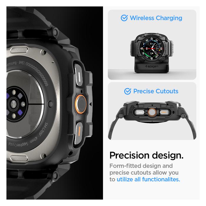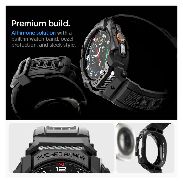 CASE STRAP FOR SAMSUNG GALAXY WATCH ULTRA 47MM SPIGEN RUGGED ARMOR PRO SMARTWATCH CARBON SOFTCASE BAND - MATTE BLACK, 47MM