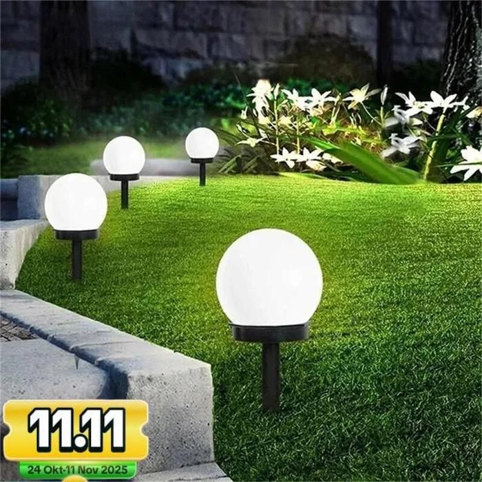 SALE !! LAMPU TAMAN TANCAP SOLAR PANEL MODEL BOLA WATERPROOF IP66 / LAMPU TAMAN HEMAT ENERGI - PUTIH-1PCS TERMURAH