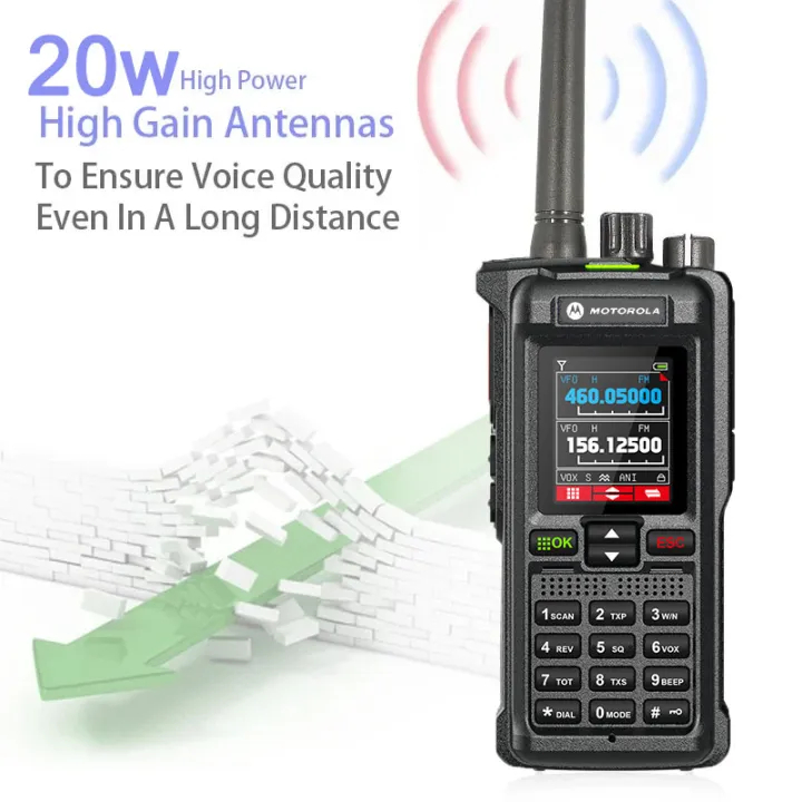 HT Motorola GT12 PLUS Walkie Talkie Jarak Jauh 25KM IP67 Tahan air dan kedap debu Transceiver Dual Band dua arah Radio 20 Watt Handy Talky