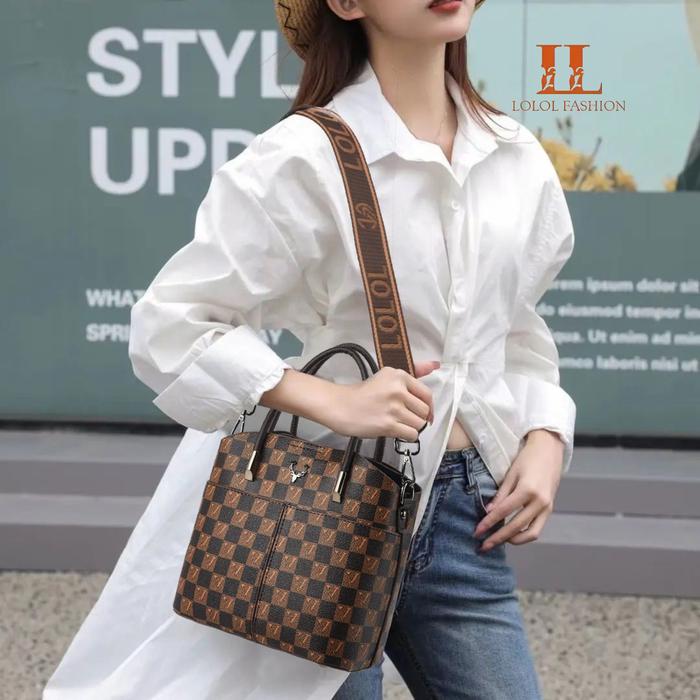 Lolol Fashion Tas Selempang Wanita Tas Sling Bag Wanita Tas Handbag Wanita Tas Fashion Cewek Terbaru - A011 V - Khaki