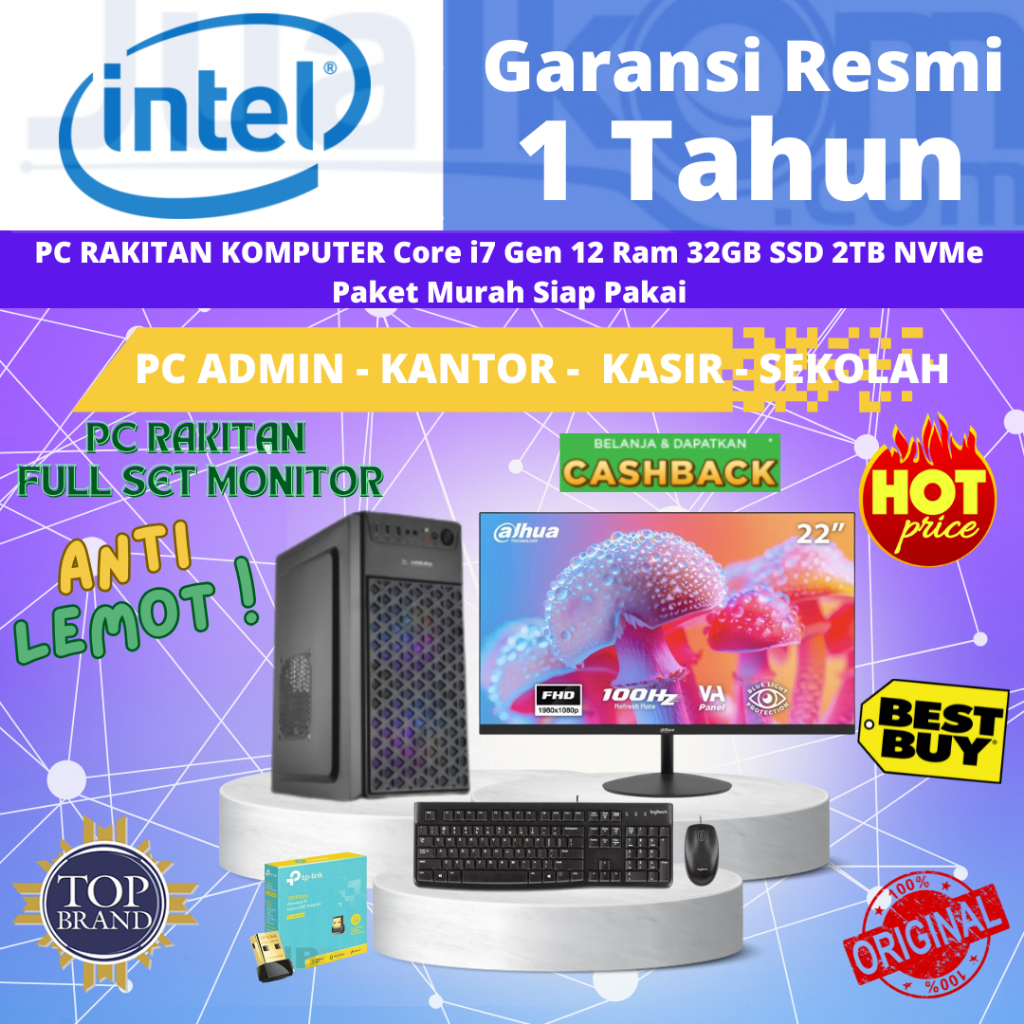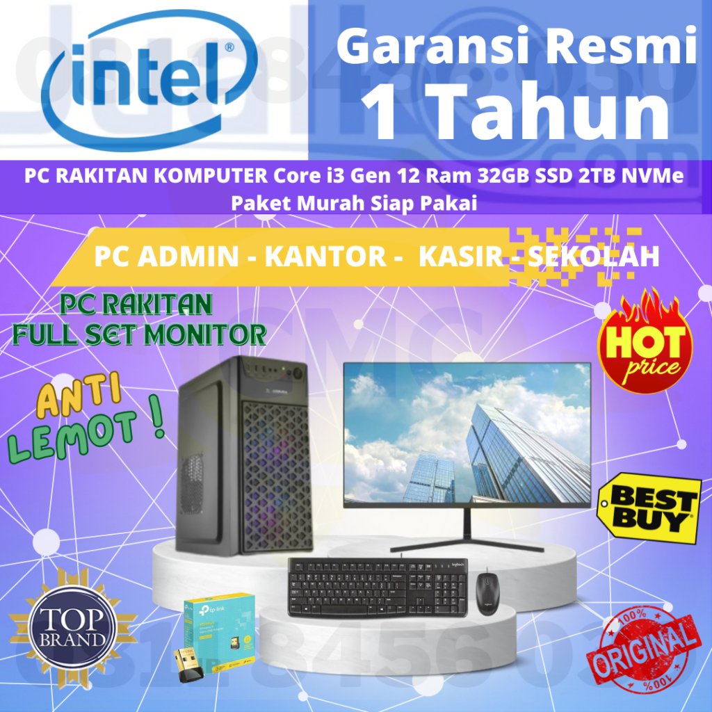 PC CPU KOMPUTER RAKITAN GEN12 CORE i3-12100 Ram 32GB 2TB SSD Fullset Monitor Siap Pakai