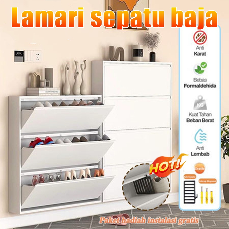 Lemari Sepatu/Rak Sepatu/2 - 4 Layer Kuat Tebal Lemari Sepatu Minimalis Rak Sepatu Susun Besi/Ember Baja Ultra Tipis Berbahan Logam