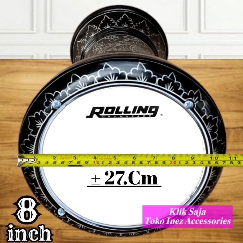 Kendang Atau Darbuka Kayu 8 inch Hitam Silver Rolling Putih Import