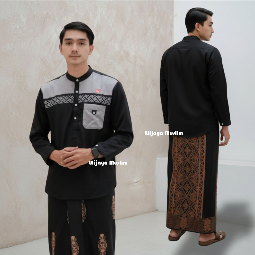 SET SARKO Dewasa Sarung Dan Koko Lengan Panjang Pria Muslim Motif Batik Sarung Motif Sarang Tawon