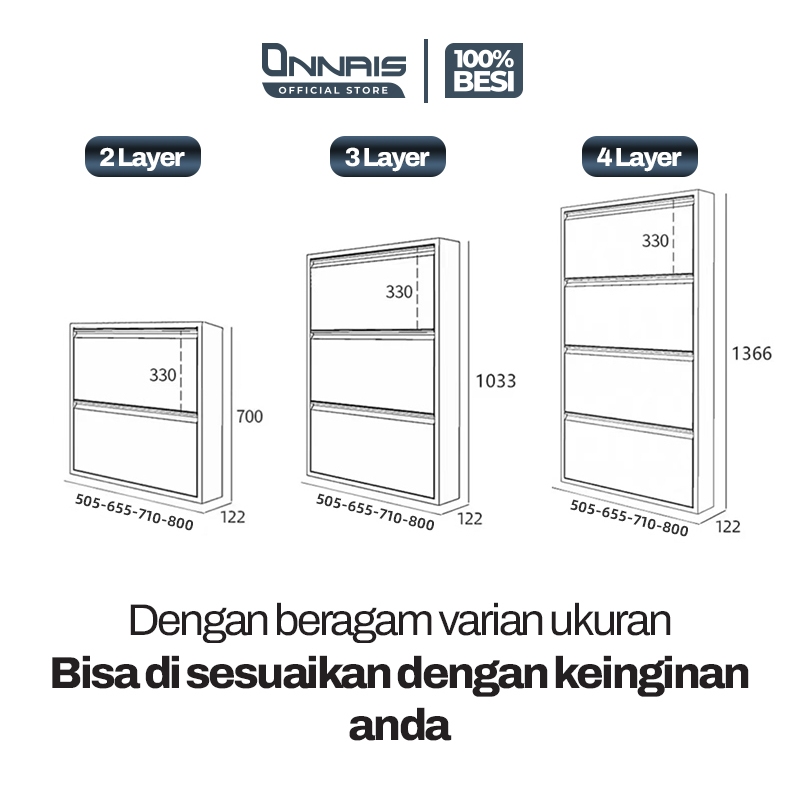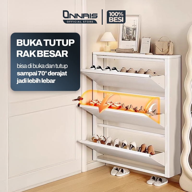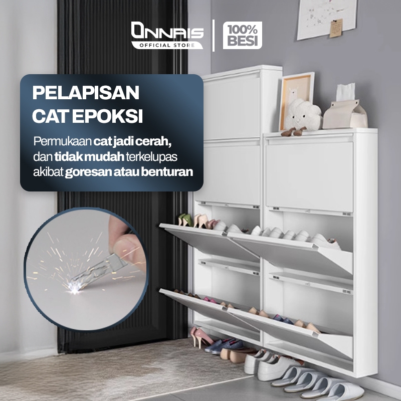 ONNAIS Rak Sepatu Lemari Besi Tertutup 2–4 Pintu Lemari Sepatu Susun Minimalis Anti Karat Kuat Tebal