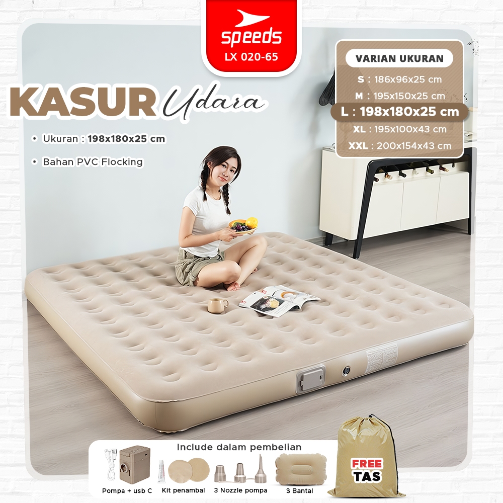 SPEEDS Kasur Angin Tiup 200x154x43cm Multifungsi Matras Kasur Pompa Outdoor Camping Rumahan Inflatable Bed 020-65