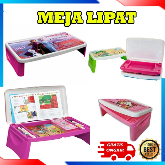 Meja Belajar Anak Lipat Plastik Karakter Dengan Tempat Laci Penyimpanan