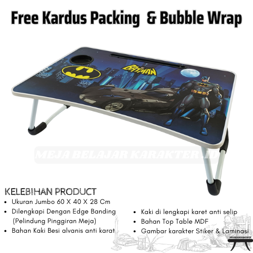 Meja belajar anak lipat besar 60x40 cm meja laptop meja lipat karakter Batman