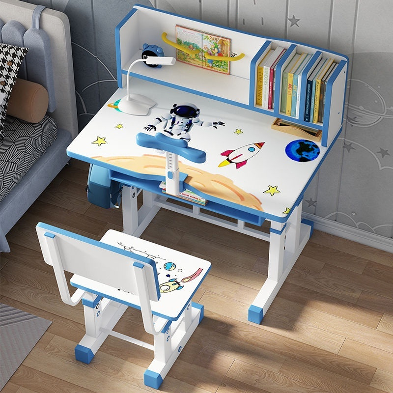 [Garansi 10 tahun]Meja Belajar Anak Set Kursi Tinggi Dapat Diatur Meja Kursi Anak Dilengkapi Rak Buku Untuk Rumah Tangga