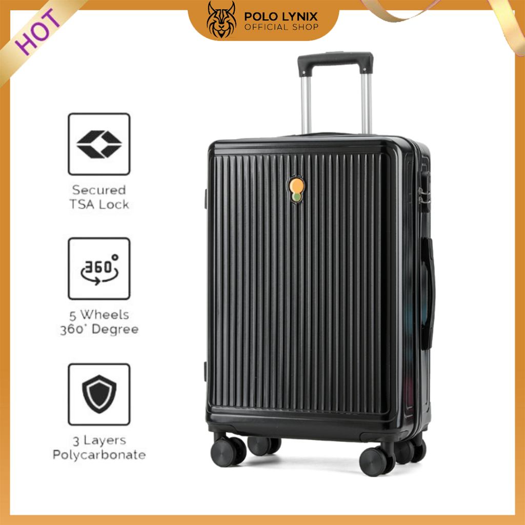 Pololynix Koper Anti Maling Kabin & Bagasi Tsa Lock Double Zipper 20 24 28 Inch Bahan Polycarbonate Anti Bentur Kuat Rin
