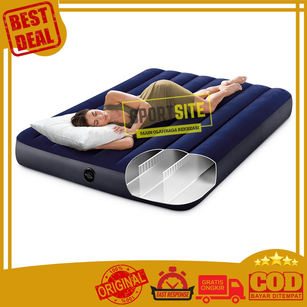 Intex Dura Beam Double 1.91m x 1.37m x 25cm Kasur Fiber Matras Portable Kasur Angin Tiup Ranjang Travel Praktis DuraBeam