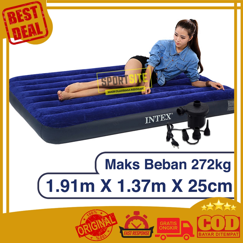 Intex Dura Beam Double 1.91m x 1.37m x 25cm Kasur Fiber Matras Portable Kasur Angin Tiup Ranjang Travel Praktis DuraBeam